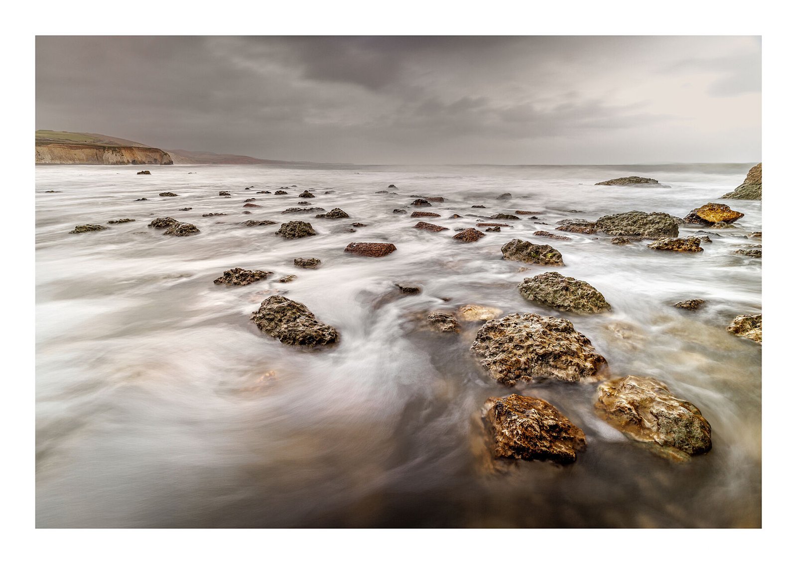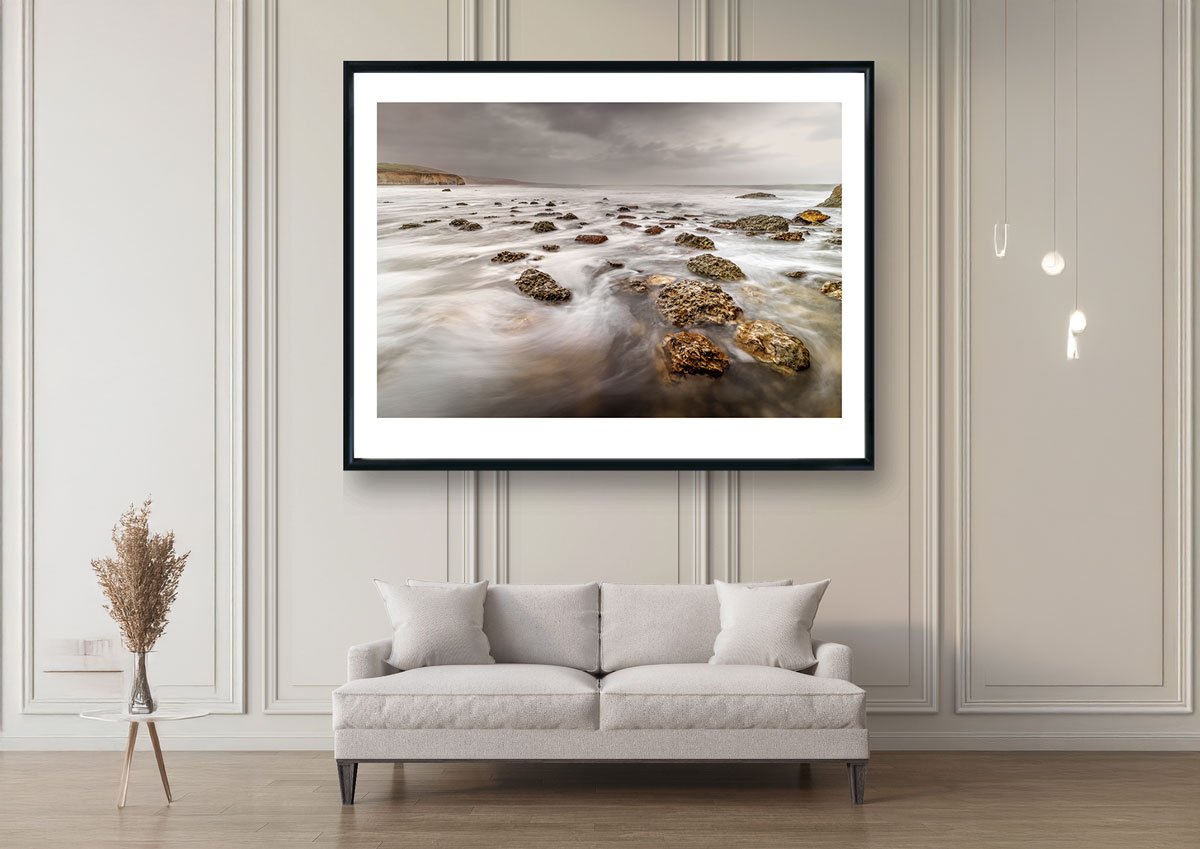 Freshwater Bay has a mood all of its own—especially on stormy days. I captured this shot during a break in the weather, using a long exposure to soften the crashing waves into a smooth, mist-like flow around the dark rocks in the foreground. The cliffs across the bay stood quietly against the brooding sky, timeless and unshaken.