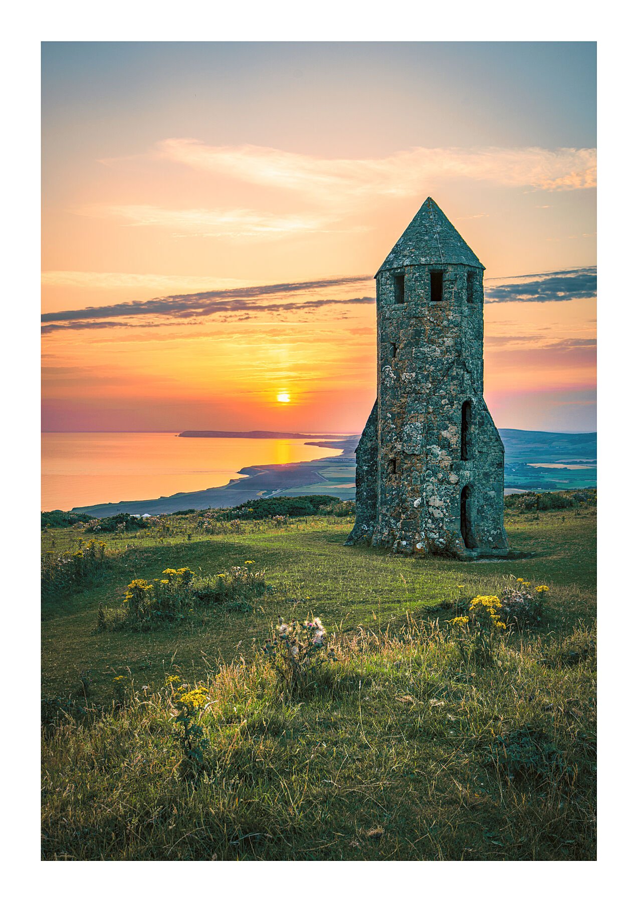 Bring home the timeless beauty of the Isle of Wight with this fine art coastal print featuring St Catherine’s Oratory, also known as the Pepper Pot. Captured on a spectacular evening walk with my son and dog, the setting sun cast a warm, golden light over the historic tower and the sweeping coastal landscape beyond.